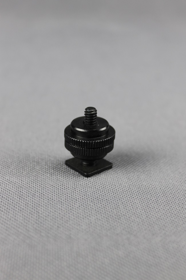 Šroub 1/4" a 3/8" v jednom s paticí pro zasunutí do sáněk blesku.