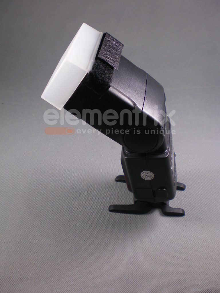 Difuzér se jednoduše nasadí na hlavu a upne pomocí suchého zipu na gumě. Gumové dorazy zabraňují sklouznutí difuzéru z hlavy blesku.