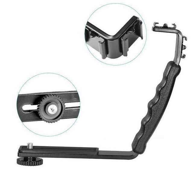 Držák Vám umožní připojit více blesků, doplňků na jeden držák.