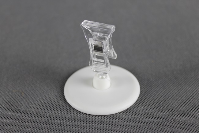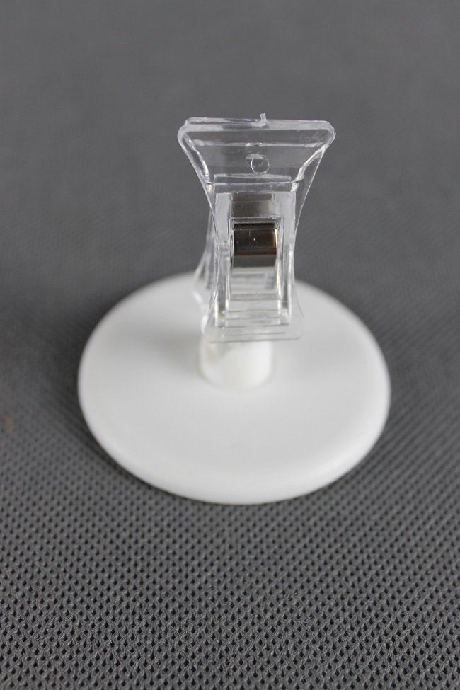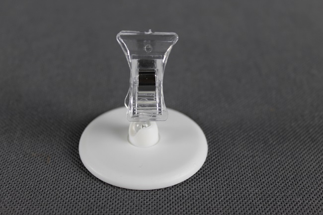 Klip na kruhovém podstavci je možné nechat volně stát nebo jednoduše odstranit ochranou samolepící pásku a přilepit na jakýkoliv hladký povrch.