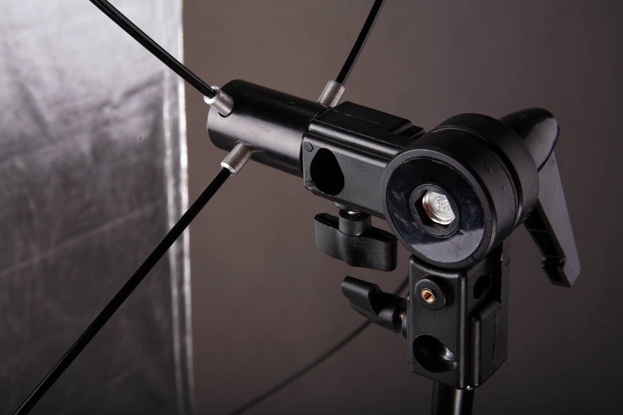 Do polohovacího kloubu se upevní 4 pružinové pruty které zajišťují rovnoměrné vypnutí odrazové plochy.