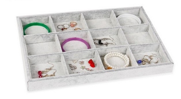 - Plato na uloženie, vystavenie šperkov 12 priehradiek PT13 šedý zamat ELEMENTRIX