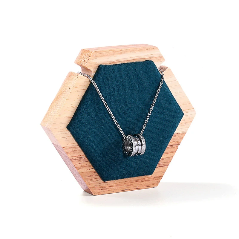 1x ECO vzhled moderní stojánek na šperky ze dřeva a textílie ve tvaru oktagonu
