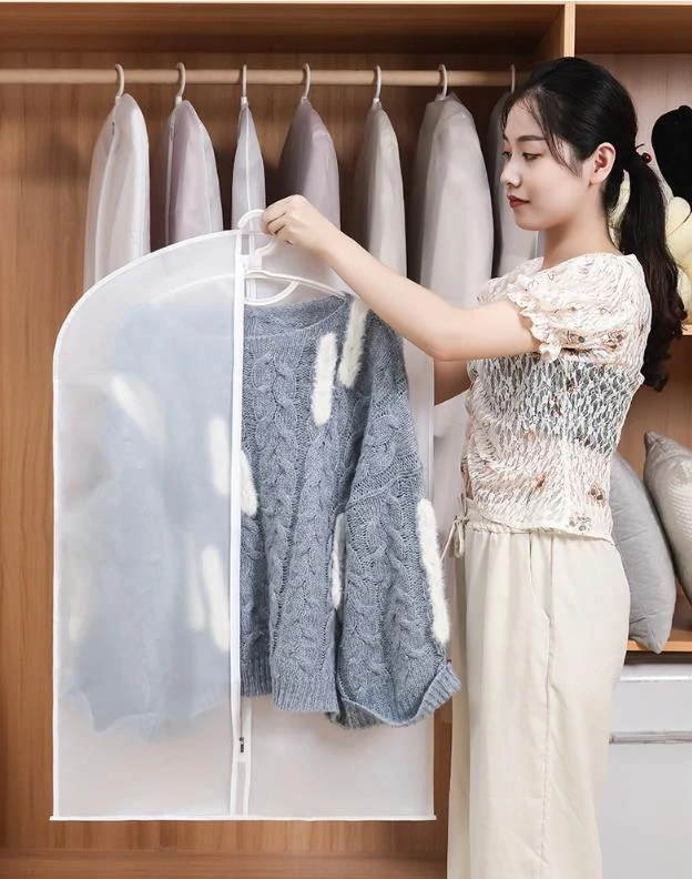 Tento priestranný ochranný vak na oblečenie je ideálny na uloženie a ochranu odevov ako sú saká, šaty, kabáty či obleky. Vak chráni pred prachom, ušpinením či zašlostí a pomáha uchovať vaše oblečenie v perfektnom stave ako doma v skrini, tak pri cestovaní či skladovaní. Vak je vyrobený z priedušného materiálu, ktorý zaisťuje cirkuláciu vzduchu a minimalizuje riziko vzniku vlhkosti alebo zápachu. Predné zapínanie na zips uľahčuje rýchle a pohodlné vloženie aj vybratie odevov. Vak nie je vodeodolný, preto by nemal byť vystavovaný priamej vlhkosti alebo dažďu.