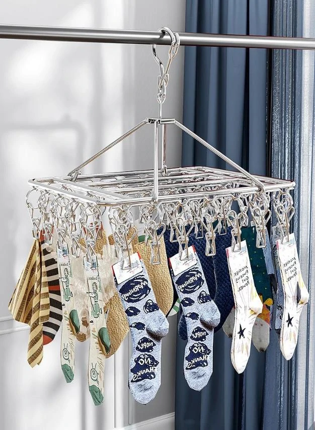 Praktický sušiak je navrhnutý špeciálne na sušenie drobnej bielizne ako sú ponožky, spodná bielizeň či detské oblečenie. Vďaka sade 40 stabilných klipov ľahko zavesíte viac kusov bielizne naraz, čím efektívne využijete priestor v kúpeľni, na balkóne alebo pri kempovaní. Sušiak má stabilnú nerezovú konštrukciu, je odolný voči vlhkému prostrediu a po zložení nezaberá takmer žiadne miesto. Použitý materiál je nerezová oceľ triedy 304 ktorá vám vydrží roky.